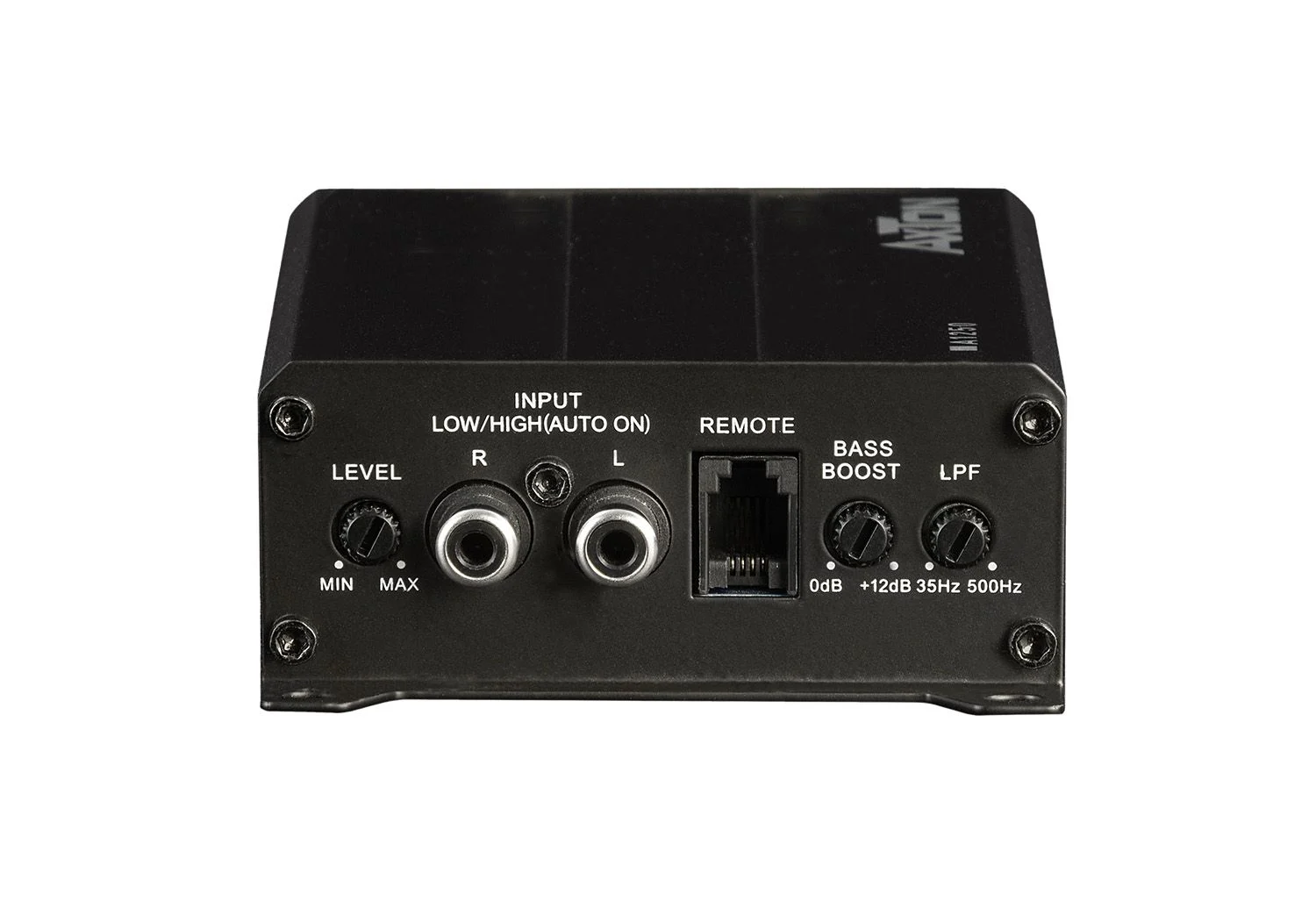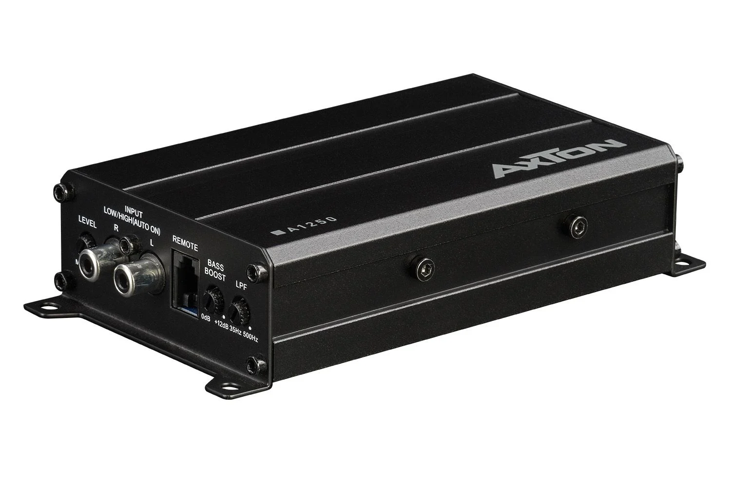 Amplificatorul digital AXTON dispune de un filtru de trecere joasă integrat de 12 dB/octavă, ajustabil continuu de la 35 la 500 Hz, precum și o funcție de boost pentru bas @ 50 Hz (0 până la 12 dB). De asemenea, include o intrare RCA și o intrare de nivel înalt cu funcție de pornire automată pentru conectarea A1250 la radiouri de fabrică fără ieșire RCA, făcând ca amplificatorul să fie ușor de combinat cu radiouri instalate din fabrică. Este inclus și un control la distanță pentru nivelul basului.