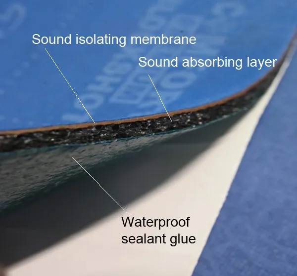 Comfort Mat BLOCKSHOT (al doilea strat) este un material multi-strat care combină sunetul și materialul termoizolant și o membrană acustică de nouă generație. Stratul de montaj este noul nostru adeziv de etanșare AdiT. Materialul este format din 3 straturi: o membrană cu mastic acustic de înaltă densitate, material fonoabsorbant și etanșant adeziv.