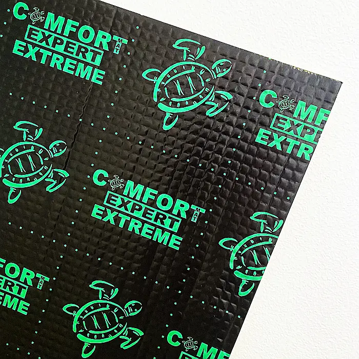 Covorașul Comfort EXTREME 3,5 mm (seria EXTREME) este un covoraș unic pentru atenuarea vibrațiilor cu două straturi, fiecare strat are sarcina sa funcțională specială. Covorașul este realizat din laminare dublă dintr-o compoziție de bitum și mastic cu folie de aluminiu (2 straturi de folie), făcând posibilă crearea de materiale unice cu rigiditate ridicată și factor de pierdere mecanică ridicat, utilizate în zonele cu sarcină mare de vibrații și pentru sunet. mașini de competiție.